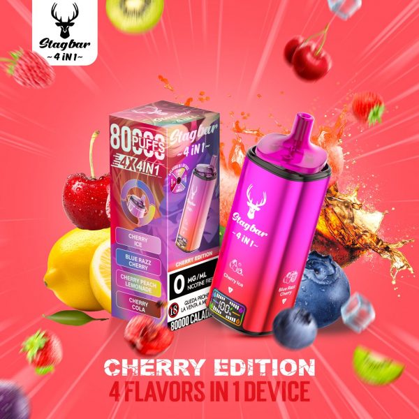 Vive una experiencia única con el Stagbar 4 en 1 Cherry Edition, el vape desechable que combina tecnología, sabor y duración. Con hasta 80.000 caladas y cero nicotina, es la opción perfecta para quienes desean disfrutar del vapeo sin aditivos ni compromisos.